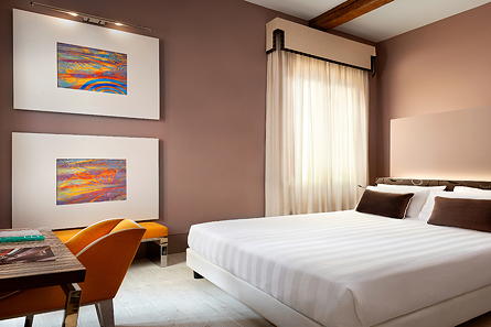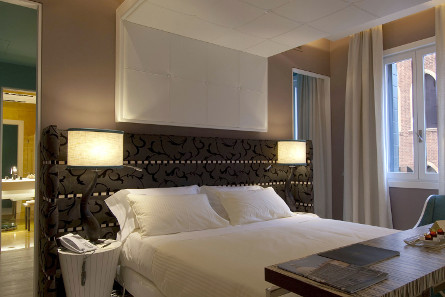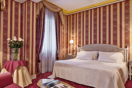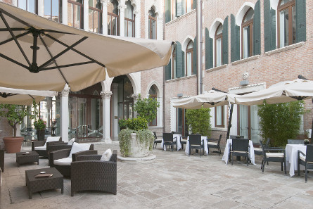 Hotel of contrasts, the Centurion Palace ***** with the sumptuous decoration of the most modern, is installed in an old Venetian palace overlooking the Grand Canal. Away from the very touristic places of the Serenissima, it is located between Santa Maria della Salute and the Guggenheim Museum. Each room has its own neat and warm decoration. Its charming little inner courtyard, lounge and restaurant complete high quality facilities for an unforgettable stay. The Fenice is a 20-minute walk away.